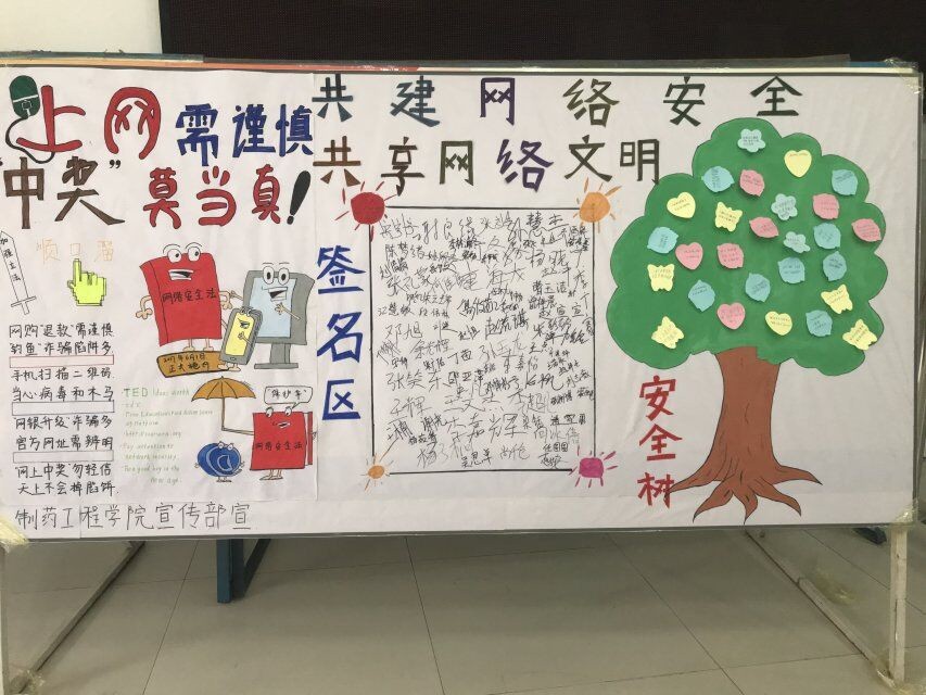 ◆9月18日 制药工程学院团总支组织学生们进行网络安全学习签名活动。