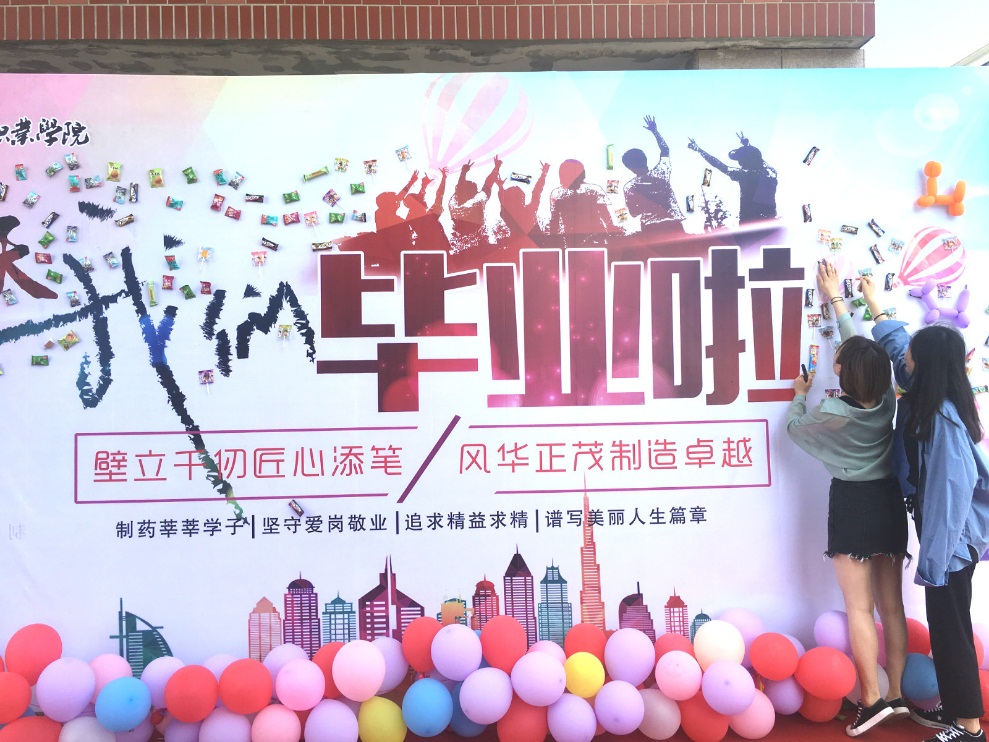毕业了,让我们放飞梦想,一起出发;毕业了,让我们鼓足风帆,一起启航;希望制药学子在以后的生活中,就像摘这颗糖果一样,踮起脚就能触到幸福。