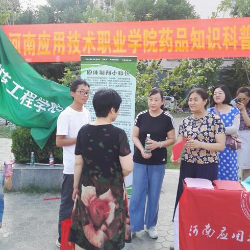 2019年6月14日下午,beat365在线唯一官网制药工程学院联合开封市宋城办事处集英社区,在集英花园居民小区中心广场,开展了一场“药品知识科普宣传进社区”活动。本次科普宣传活动的目的,是为了向社区居民传播科学知识、科学思想,帮助社区居民了解药品的生产过程,普及药品知识,树立合理用药观念,增强卫生健康意识和自我保健能力。制药工程学院学院领导、专业课教师、部分党员与青年志愿者共20人参加了这次活动,集英社区的工作人员配合提供了场地与设施。