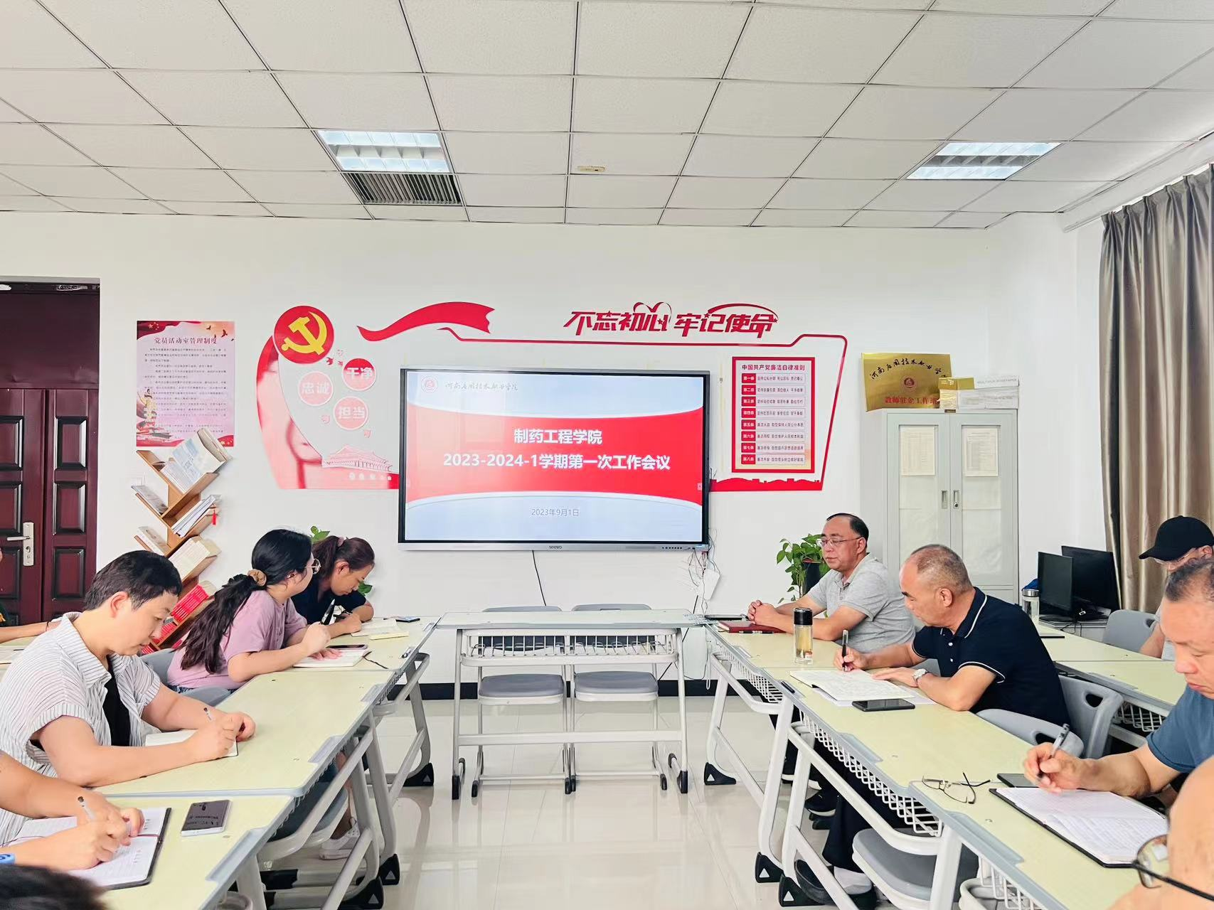 为切实做好新学期各项工作,凝心聚力谋发展,勠力同心开新局,2023年9月1日下午,制药工程学院召开新学期工作会议,落实新学期开学准备工作。制药工程学院党总支书记窦传斌、院长吕玮出席,及全体专兼职教师参加会议。