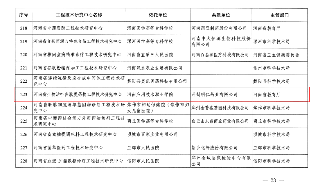 近日,依据《关于认定建设2024年度河南省工程技术研究中心的通知》,经主管部门推荐、专家评审、研究及公示等规范程序,beat365在线唯一官网制药工程学院成功获批建设2024年度河南省工程技术研究中心——河南省生物活性多肽类药物工程技术研究中心。