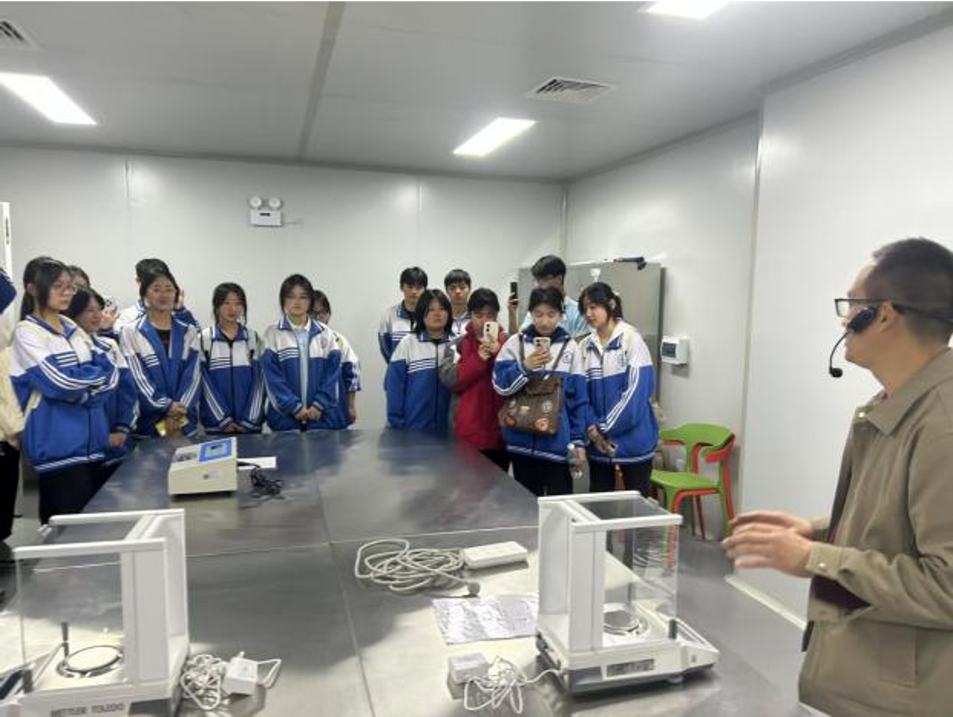 开封铁路中学的师生们首先步入GMP生产车间,这里是药品生产质量规范的核心区域,展示了药品生产流程。制药工程学院孙高磊老师向参观师生详细讲解药品从原材料到成品的工序及质量管控要点,同学们全神贯注、积极提问。随后铁路中学的师生们依次参观了滴丸车间、口服液洗灌封车间、压片生产车间等实训教室,并在压片生产实训室品尝了现场制作的奶片。