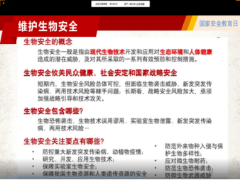程老师分别从国家安全教育日的基础知识、维护国家安全具体内容、公民在维护国家安全中的义务三个方面进行阐述。重点结合当前新冠肺炎疫情,以疫情为特殊教材,让学生结合真实体会了解生物安全的相关内容。习近平总书记强调,要从保护人民健康、保障国家安全、维护国家长治久安的高度,把生物安全纳入国家安全体系,系统规划国家生物安全风险防控和治理体系建设,全面提高国家生物安全治理能力。
