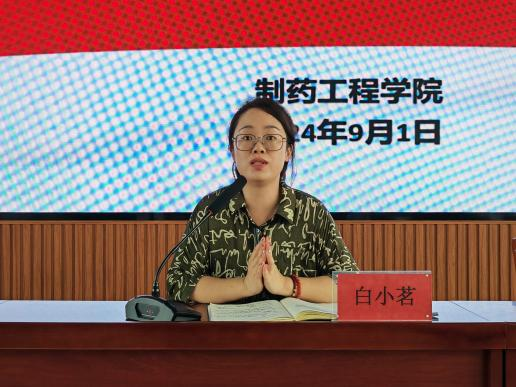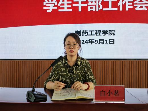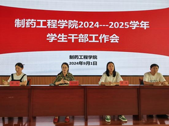 为进一步强化学生干部的工作意识,落实学校各项工作,加强学生会队伍建设,制药工程学院于2024年9月1日在五楼报告厅开展2024-2025学年学生干部工作会,会议由党总支部副书记白小茗主持,曹璐、邢星、代东炎、全体学生会干部、23级各班班长及各班团支书参与。