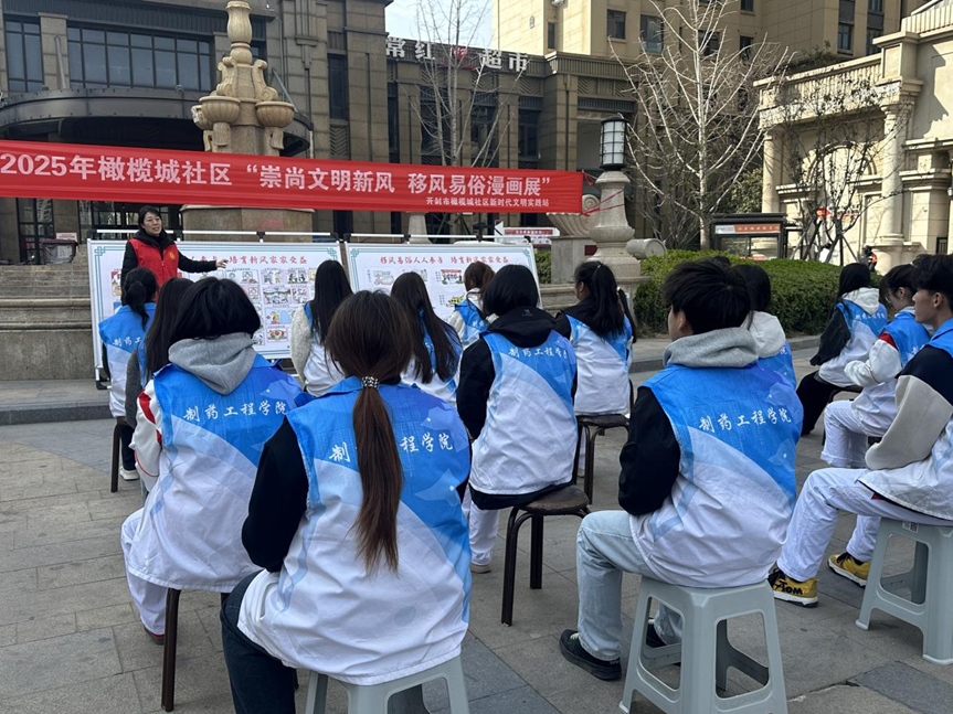 倡导移风举 点亮社会新文明丨制药工程学院赴橄榄城社区开展“崇尚文明新风,移风易俗漫画展”移风易俗主题活动