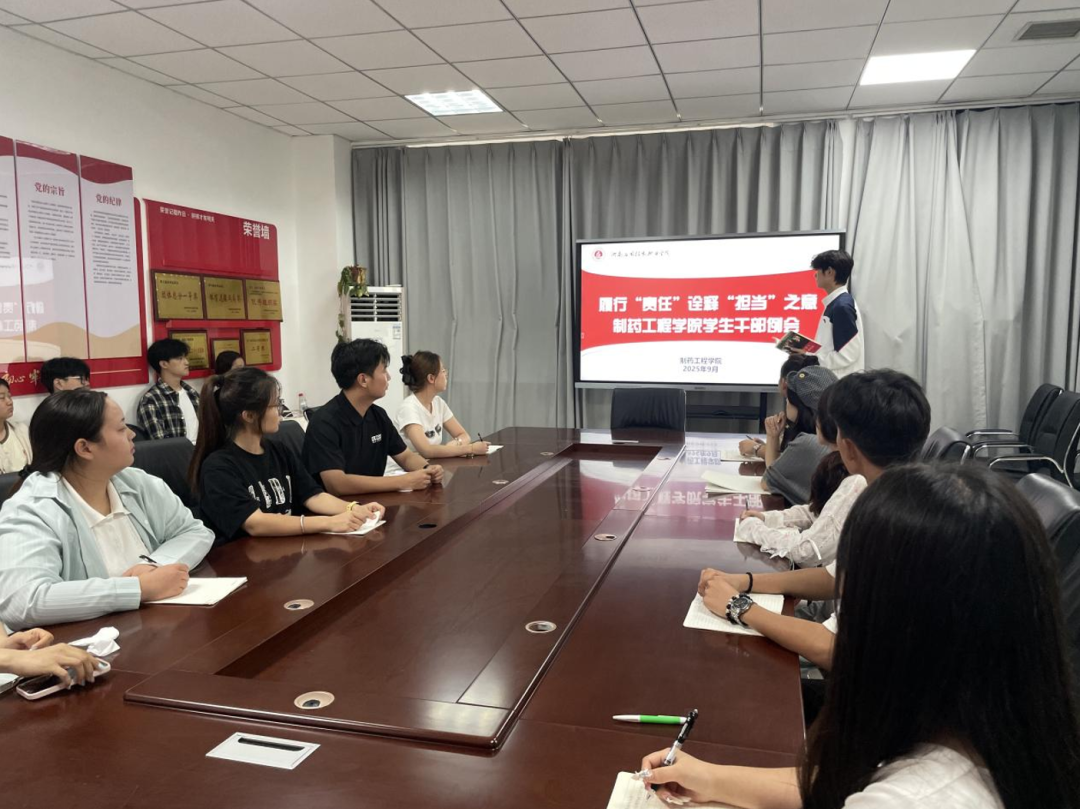 为进一步强化团队协作意识与自我管理能力,充分发挥学生骨干的先锋引领作用,制药工程学院于9月8日在行政楼301会议室召开学生干部工作例会。制药工程学院学生会主席团及24级负责人参会,会议由学生会主席团成员余生涛主持。