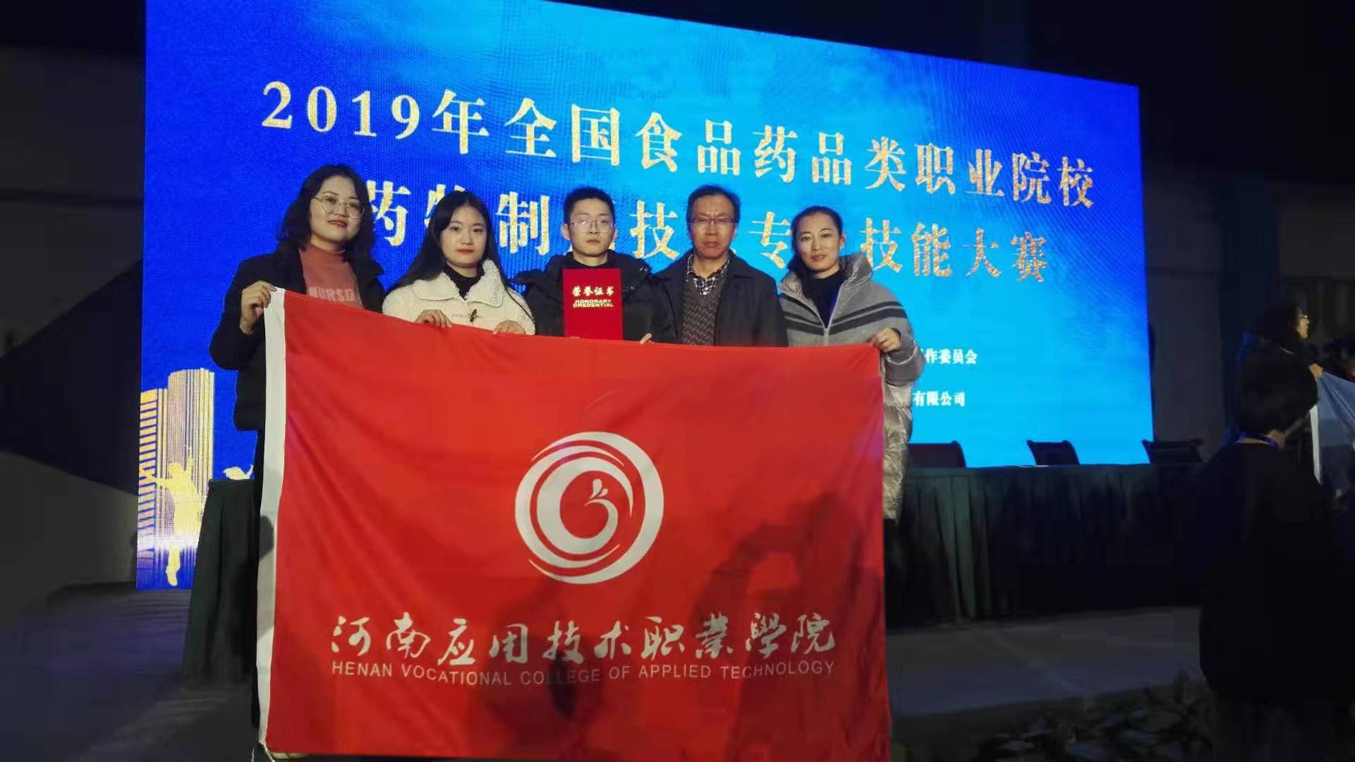 2019年12月22日晚,为期3天的“2019年全国食品药品类职业院校‘药物制剂技术’专业技能大赛”在江苏泰州落下帷幕,我校制药工程学院高莉丽老师和史真老师指导的赵宣宣、李欣浩两名同学以总分第10名的优异成绩荣获团体二等奖。
