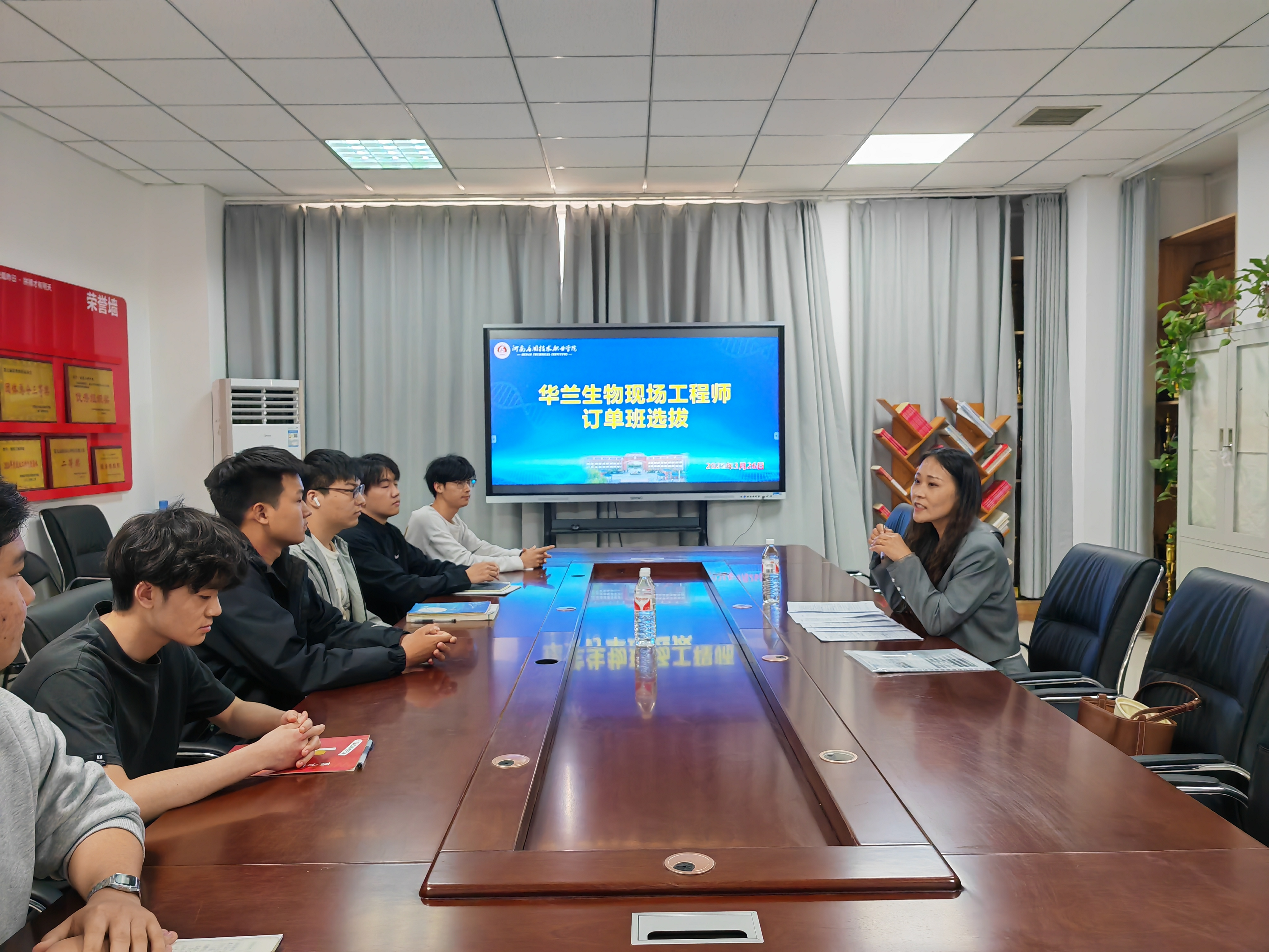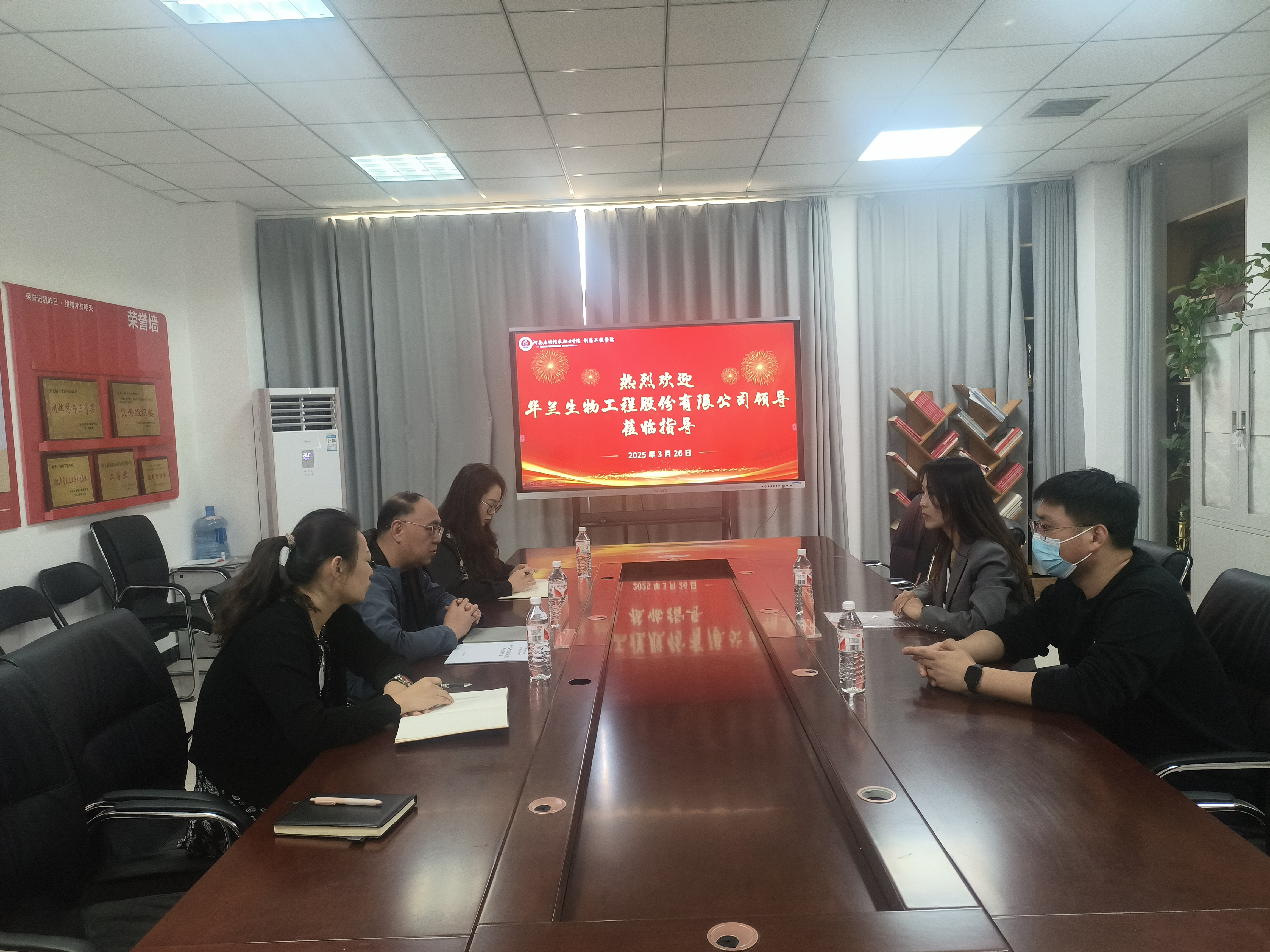 首先,制药工程学院院长吕玮、副书记白小茗及副院长高莉丽与华兰生物企业代表就订单班学生选拔标准及实习细节进行座谈。