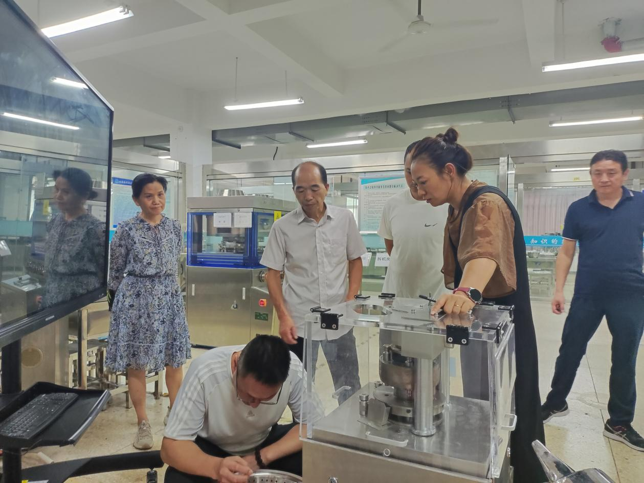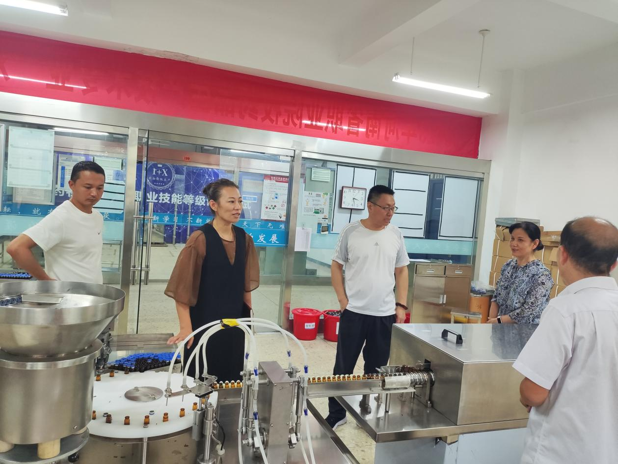 樊春勇、张晓晨一行先后参观了固体制剂实训车间、液体制剂实训车间、中药制药实训车间,就设备现状对拟合作开展的“复方肝水解物片”的试生产工作进行探讨。为下一步的实质性工作开展奠定基础。