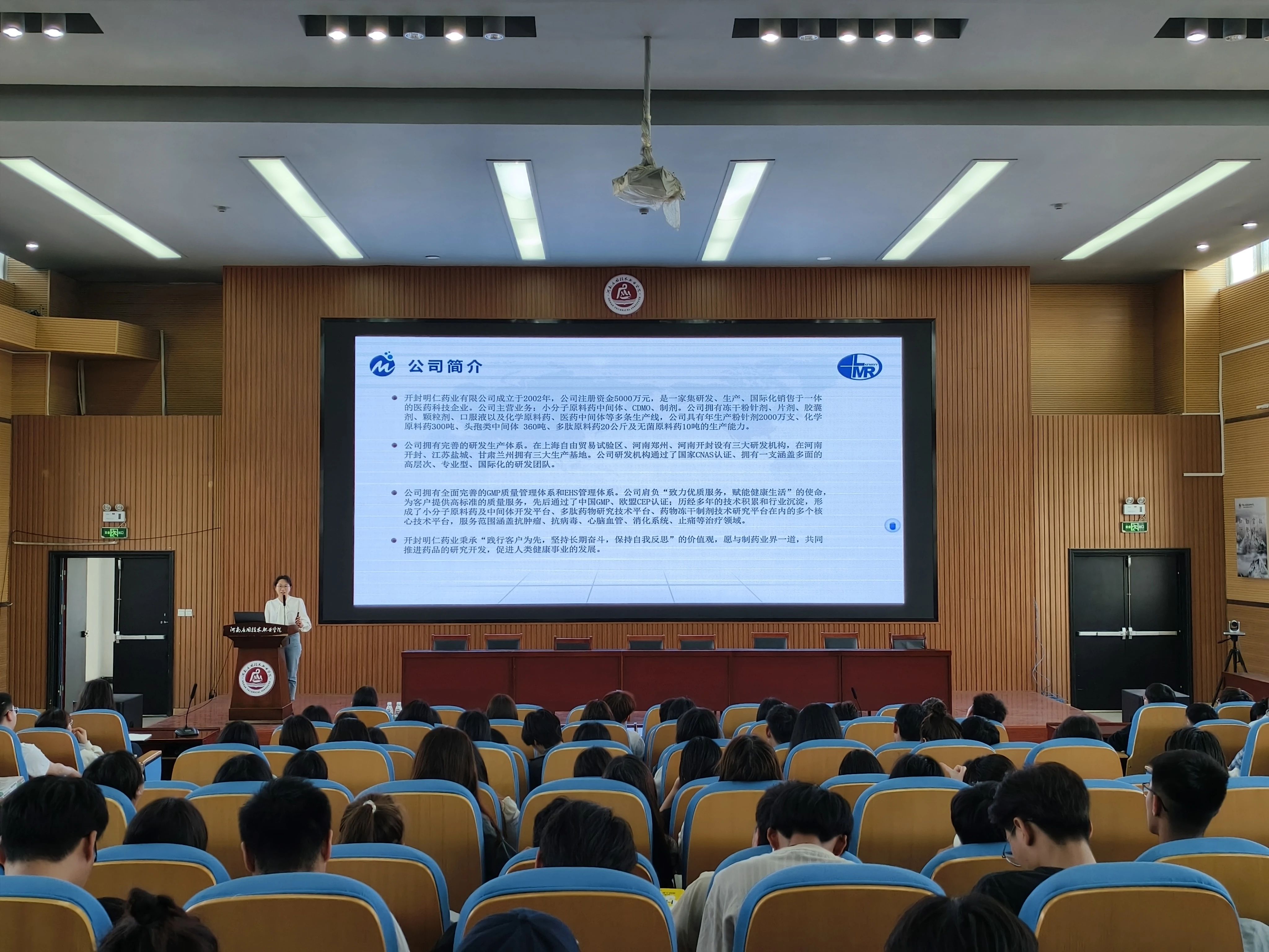 为贯彻落实党的二十大精神,拓宽beat365官网毕业生就业渠道,把握优质就业岗位,切实落实推进就业相关工作,促进学院毕业生充分高质量就业,2024年4月12日制药工程学院邀请上海金不换兰考制药有限公司、开封明仁药业有限公司开展专场宣讲活动。上海金不换兰考制药有限公司人事经理蓝雨、开封明仁药业有限公司生产副总刘华分别带队莅临beat365官网开展校招宣讲,学院党总支副书记白小茗、就业专员邢星、辅导员代东炎及学院2025届200余名毕业生参加宣讲会,宣讲会由邢星主持。