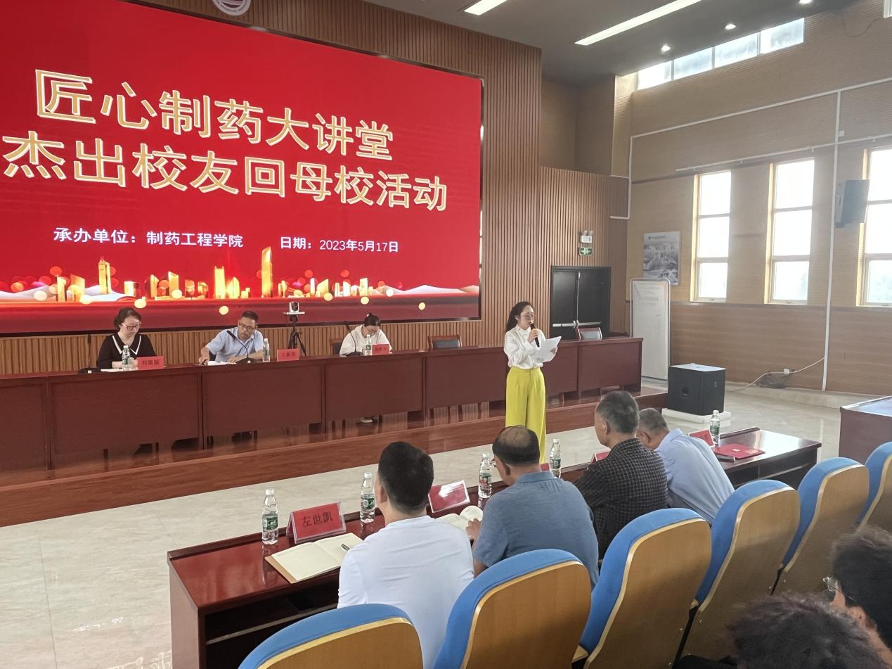 为切实推动学习贯彻习近平新时代中国特色社会主义思想主题教育工作走深走实,以中国式现代化的科学内涵加强学院建设,引导广大师生用心用情用力做好党的二十大精神宣讲工作。5月17日,制药工程学院在开封校区南院五楼报告厅举办了“匠心制药大讲堂”暨杰出校友回母校活动,校党委委员刘效平,优秀校友、开封明仁药业有限公司集团副总裁王新房,制药工程学院党总支书记窦传斌、院长吕玮,院长办公室校友办主任左世凯等相关人员出席本次活动,200余名学生现场聆听。活动由制药工程学院党总支副书记白小茗主持。